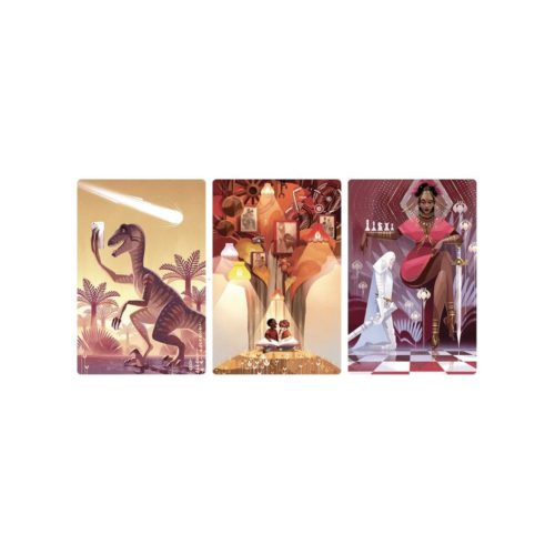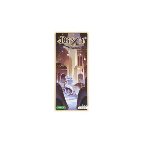 Dixit Revelations, es una expansión que contiene 84 nuevas cartas con un arte fantástico y surrealista. Incluye 21 cartas doradas.